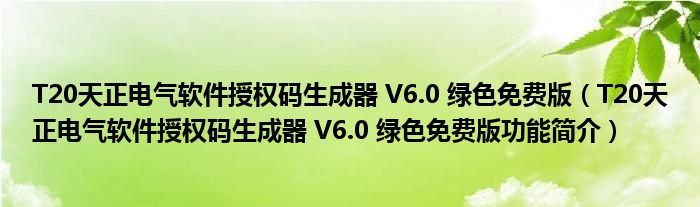 T20天正电气软件授权码生成器 V6.0 绿色免费版(T20天正电气软件授权码生成器 V6.0 绿色免费版功能简介)