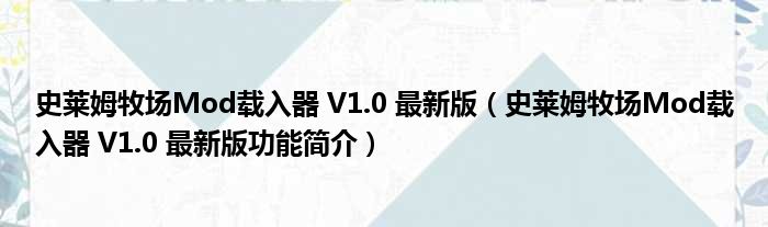 史莱姆牧场Mod载入器 V1.0 最新版(史莱姆牧场Mod载入器 V1.0 最新版功能简介)