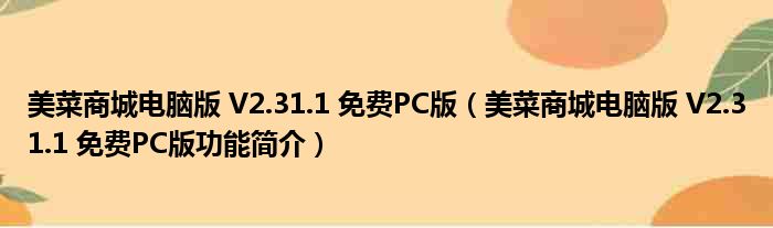 美菜商城电脑版 V2.31.1 免费PC版(美菜商城电脑版 V2.31.1 免费PC版功能简介)