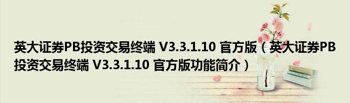 英大证券PB投资交易终端 V3.3.1.10 官方版(英大证券PB投资交易终端 V3.3.1.10 官方版功能简介)