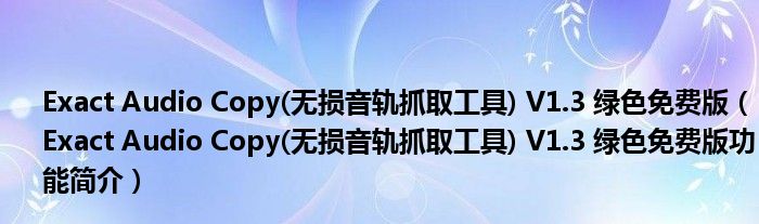Exact Audio Copy(无损音轨抓取工具) V1.3 绿色免费版(Exact Audio Copy(无损音轨抓取工具) V1.3 绿色免费版功能简介)