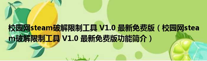 导读 大家好,关于校园网steam破解限制工具 V1 0 最新免费版,校园网steam破解限制工具 V1 0 最新免费版功能简介这个很多人还不知道,小勒来为