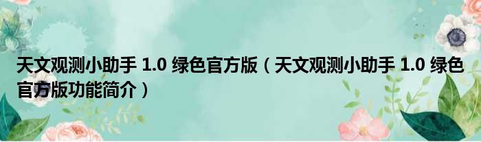 天文观测小助手 1.0 绿色官方版(天文观测小助手 1.0 绿色官方版功能简介)