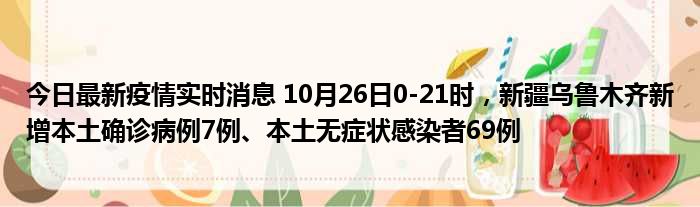 今日最新疫情实时消息 10月26日0-21时,新疆乌鲁木齐新增本土确诊病例7例、本土无症状感染者69例