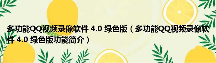 导读 大家好,关于多功能QQ视频录像软件 4 0 绿色版,多功能QQ视频录像软件 4 0 绿色版功能简介这个很多人还不知道,小勒来为大家解答以上的问