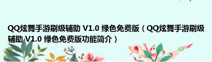 QQ炫舞手游刷级辅助 V1.0 绿色免费版(QQ炫舞手游刷级辅助 V1.0 绿色免费版功能简介)