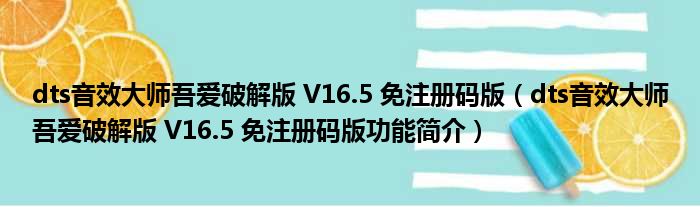 dts音效大师吾爱破解版 V16.5 免注册码版(dts音效大师吾爱破解版 V16.5 免注册码版功能简介)