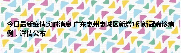 今日最新疫情实时消息 广东惠州惠城区新增1例新冠确诊病例,详情公布