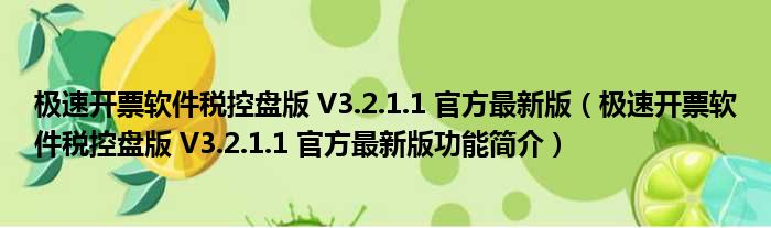 极速开票软件税控盘版 V3.2.1.1 官方最新版(极速开票软件税控盘版 V3.2.1.1 官方最新版功能简介)