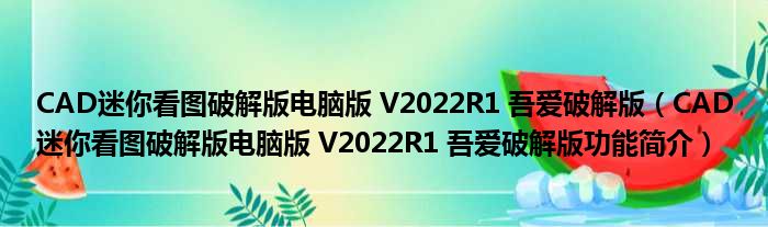 CAD迷你看图破解版电脑版 V2022R1 吾爱破解版(CAD迷你看图破解版电脑版 V2022R1 吾爱破解版功能简介)
