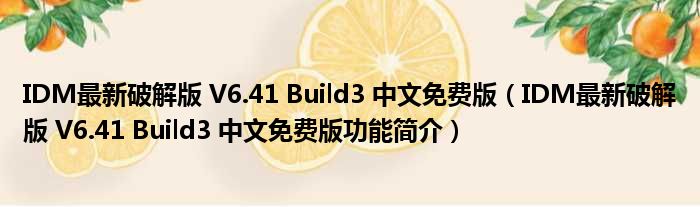 IDM最新破解版 V6.41 Build3 中文免费版(IDM最新破解版 V6.41 Build3 中文免费版功能简介)