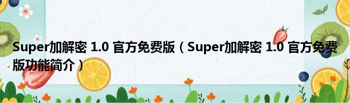 Super加解密 1.0 官方免费版(Super加解密 1.0 官方免费版功能简介)
