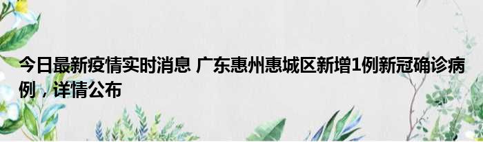 今日最新疫情实时消息 广东惠州惠城区新增1例新冠确诊病例,详情公布