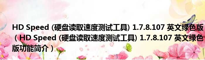 HD Speed (硬盘读取速度测试工具) 1.7.8.107 英文绿色版(HD Speed (硬盘读取速度测试工具) 1.7.8.107 英文绿色版功能简介)