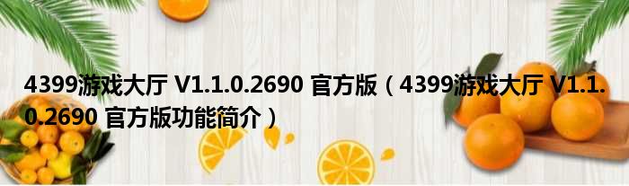 4399游戏大厅 V1.1.0.2690 官方版(4399游戏大厅 V1.1.0.2690 官方版功能简介)