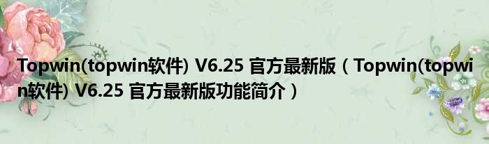 导读 大家好,关于Topwin(topwin软件) V6 25 官方最新版,Topwin(topwin软件) V6 25 官方最新版功能简介这个很多人还不知道,小勒来为大家解答