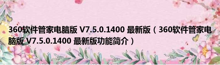 大家好,关于360软件管家电脑版 V7.5.0.1400 最新版,360软件管家电脑版 V7.5.0.1400 最新版功能简介这个很多人还不知道,小勒来为大家解答以上的问题,现在让我们一起来看看吧!