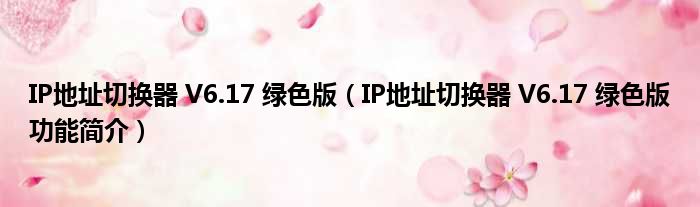 IP地址切换器 V6.17 绿色版(IP地址切换器 V6.17 绿色版功能简介)