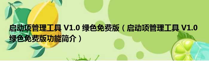 启动项管理工具 V1.0 绿色免费版(启动项管理工具 V1.0 绿色免费版功能简介)