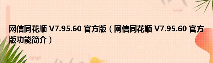 网信同花顺 V7.95.60 官方版(网信同花顺 V7.95.60 官方版功能简介)