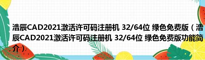 浩辰CAD2021激活许可码注册机 32/64位 绿色免费版(浩辰CAD2021激活许可码注册机 32/64位 绿色免费版功能简介)