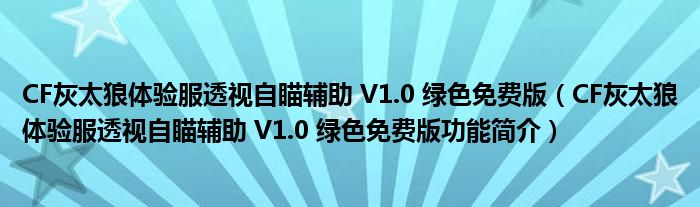 CF灰太狼体验服透视自瞄辅助 V1.0 绿色免费版(CF灰太狼体验服透视自瞄辅助 V1.0 绿色免费版功能简介)