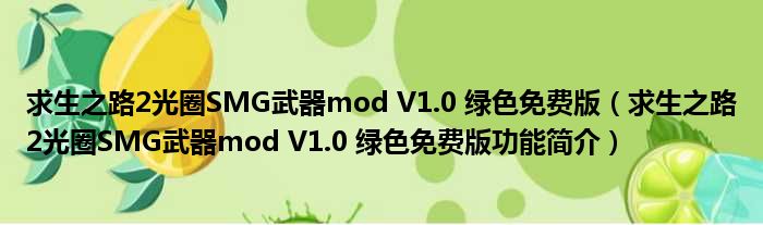 求生之路2光圈SMG武器mod V1.0 绿色免费版(求生之路2光圈SMG武器mod V1.0 绿色免费版功能简介)