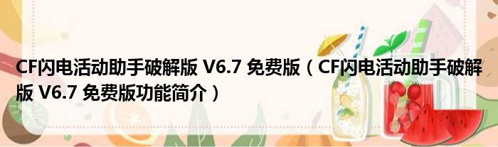 CF闪电活动助手破解版 V6.7 免费版(CF闪电活动助手破解版 V6.7 免费版功能简介)