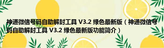 导读 大家好,关于神通微信号码自助解封工具 V3 2 绿色最新版,神通微信号码自助解封工具 V3 2 绿色最新版功能简介这个很多人还不知道,小勒来