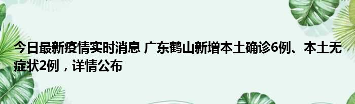 今日最新疫情实时消息 广东鹤山新增本土确诊6例、本土无症状2例,详情公布