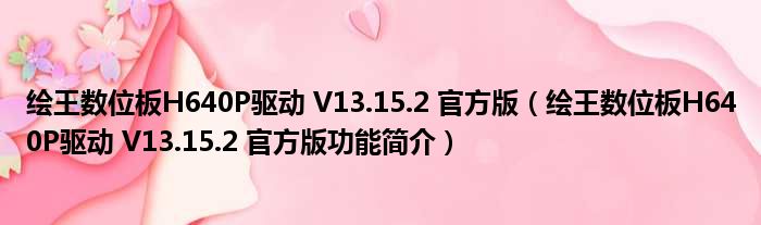 绘王数位板H640P驱动 V13.15.2 官方版(绘王数位板H640P驱动 V13.15.2 官方版功能简介)
