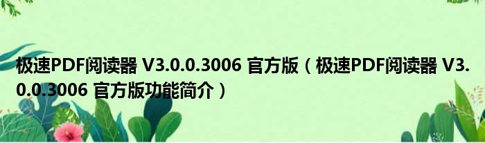 极速PDF阅读器 V3.0.0.3006 官方版(极速PDF阅读器 V3.0.0.3006 官方版功能简介)