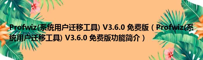 Profwiz(系统用户迁移工具) V3.6.0 免费版(Profwiz(系统用户迁移工具) V3.6.0 免费版功能简介)