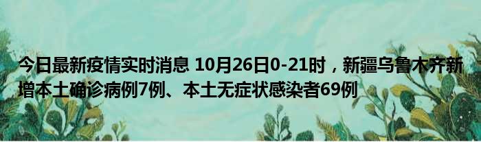 今日最新疫情实时消息 10月26日0-21时,新疆乌鲁木齐新增本土确诊病例7例、本土无症状感染者69例