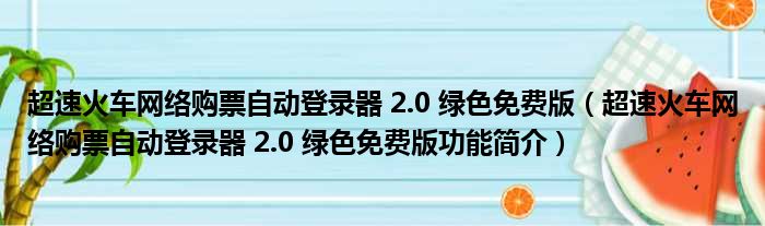 超速火车网络购票自动登录器 2.0 绿色免费版(超速火车网络购票自动登录器 2.0 绿色免费版功能简介)