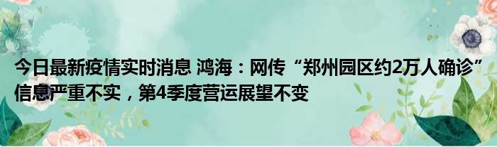 今日最新疫情实时消息 鸿海:网传“郑州园区约2万人确诊”信息严重不实,第4季度营运展望不变