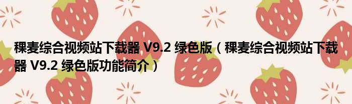稞麦综合视频站下载器 V9.2 绿色版(稞麦综合视频站下载器 V9.2 绿色版功能简介)