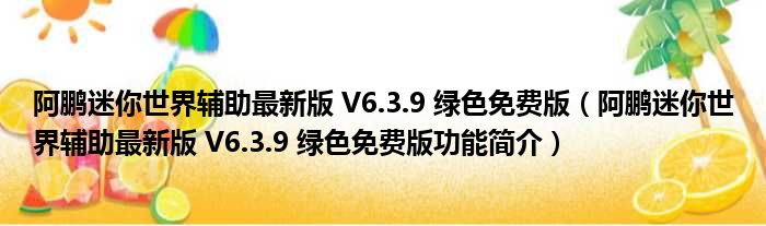 阿鹏迷你世界辅助最新版 V6.3.9 绿色免费版(阿鹏迷你世界辅助最新版 V6.3.9 绿色免费版功能简介)