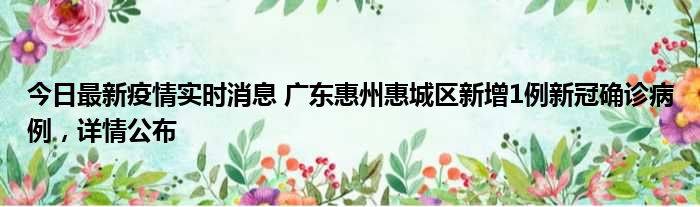今日最新疫情实时消息 广东惠州惠城区新增1例新冠确诊病例,详情公布
