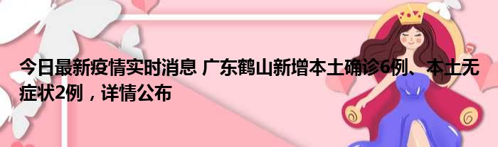 今日最新疫情实时消息 广东鹤山新增本土确诊6例、本土无症状2例,详情公布
