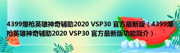 4399爆枪英雄神奇辅助2020 VSP30 官方最新版(4399爆枪英雄神奇辅助2020 VSP30 官方最新版功能简介)