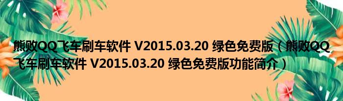熊败QQ飞车刷车软件 V2015.03.20 绿色免费版(熊败QQ飞车刷车软件 V2015.03.20 绿色免费版功能简介)