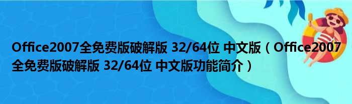 Office2007全免费版破解版 32/64位 中文版(Office2007全免费版破解版 32/64位 中文版功能简介)