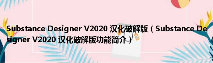 导读 大家好,关于Substance Designer V2020 汉化破解版,Substance Designer V2020 汉化破解版功能简介这个很多人还不知道,小勒来为大家解