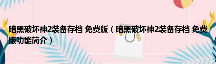 暗黑破坏神2装备存档 免费版(暗黑破坏神2装备存档 免费版功能简介)