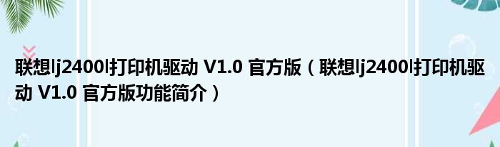 联想lj2400l打印机驱动 V1.0 官方版(联想lj2400l打印机驱动 V1.0 官方版功能简介)