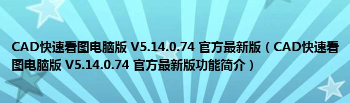 CAD快速看图电脑版 V5.14.0.74 官方最新版(CAD快速看图电脑版 V5.14.0.74 官方最新版功能简介)