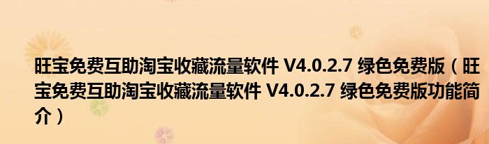 旺宝免费互助淘宝收藏流量软件 V4.0.2.7 绿色免费版(旺宝免费互助淘宝收藏流量软件 V4.0.2.7 绿色免费版功能简介)