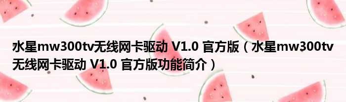 水星mw300tv无线网卡驱动 V1.0 官方版(水星mw300tv无线网卡驱动 V1.0 官方版功能简介)