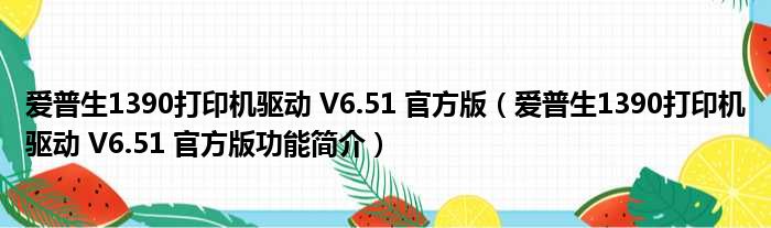 爱普生1390打印机驱动 V6.51 官方版(爱普生1390打印机驱动 V6.51 官方版功能简介)